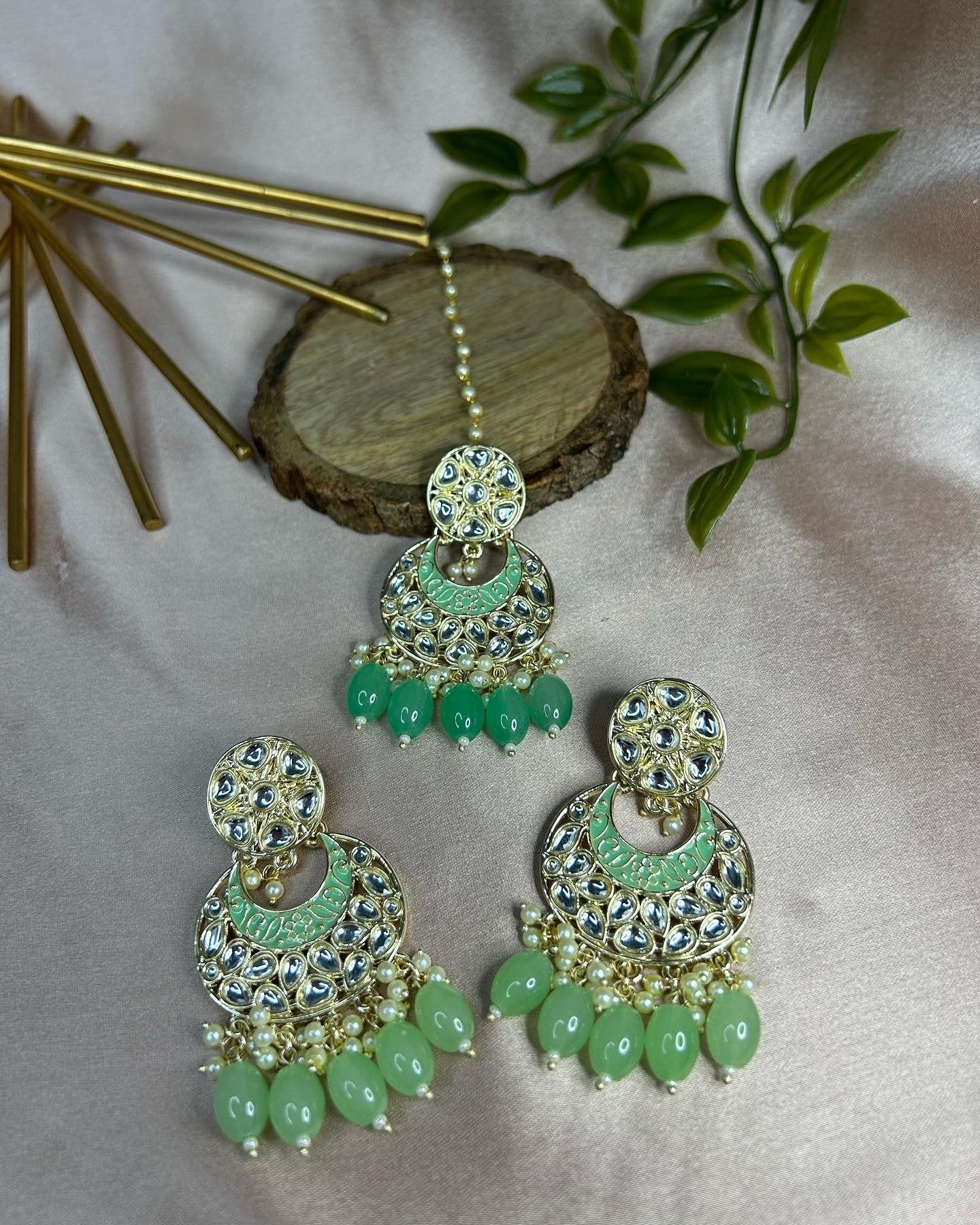 This Aarohi Teeka set offers a traditional, vibrant kundan design that is sure to stand out. The lightweight and compact design make it comfortable to wear while providing an elegant touch to any outfit. Perfect for adding a touch of culture and sophistication to your look!