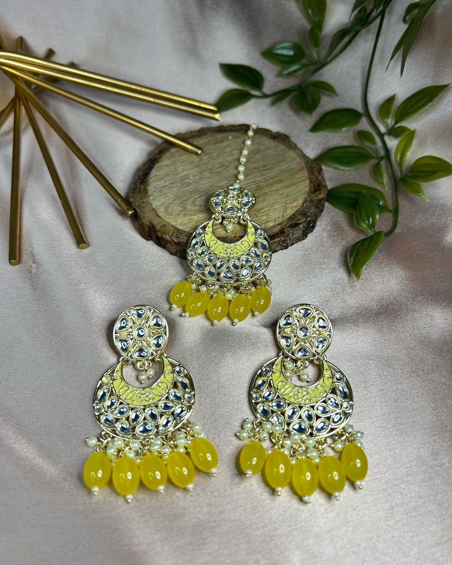 This Aarohi Teeka set offers a traditional, vibrant kundan design that is sure to stand out. The lightweight and compact design make it comfortable to wear while providing an elegant touch to any outfit. Perfect for adding a touch of culture and sophistication to your look!