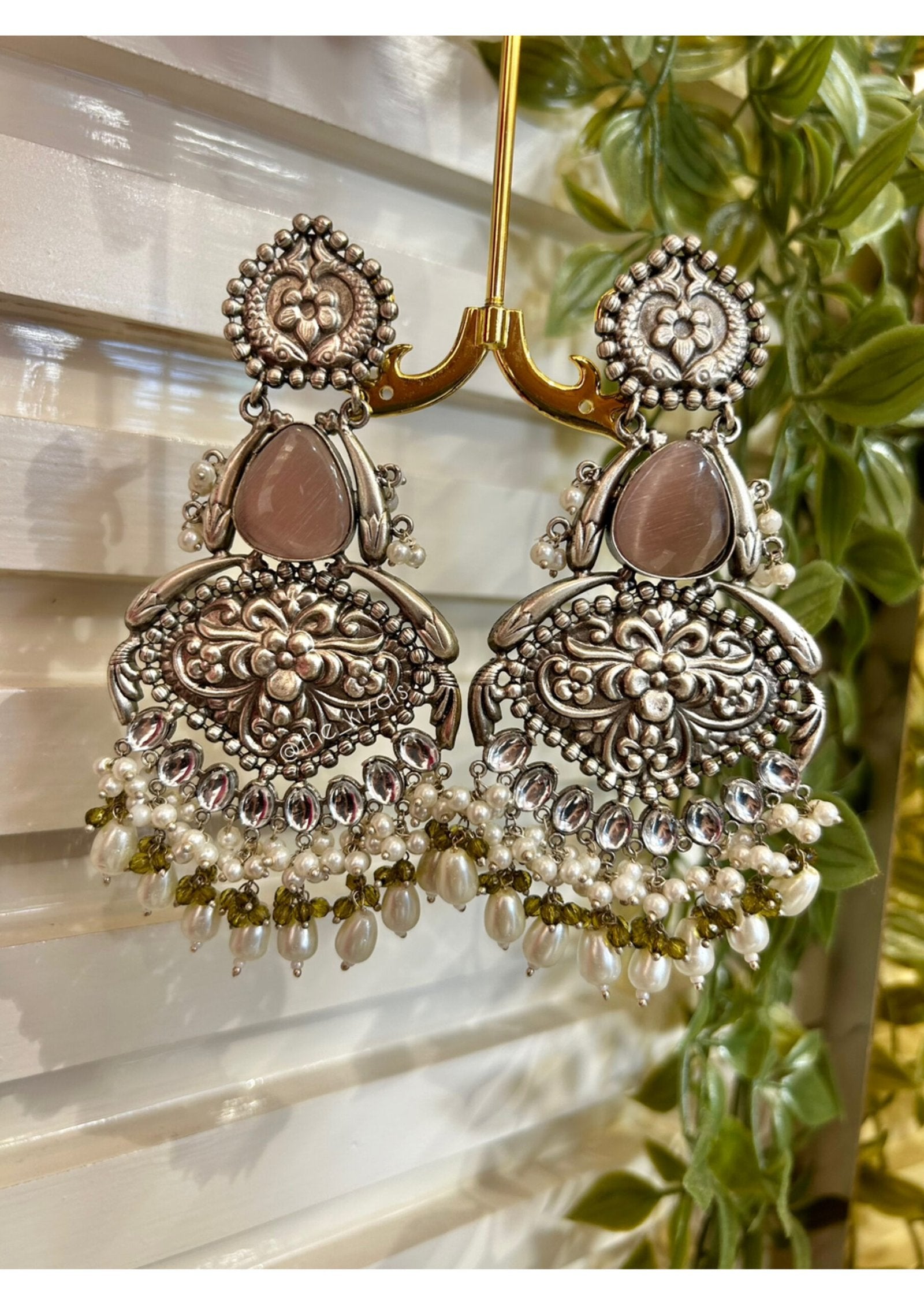 These Aarzoo earrings are handmade by local artisans using German silver and elegant pearls. Each piece is uniquely crafted with a nawabi touch. Elevate your style with these one-of-a-kind earrings.