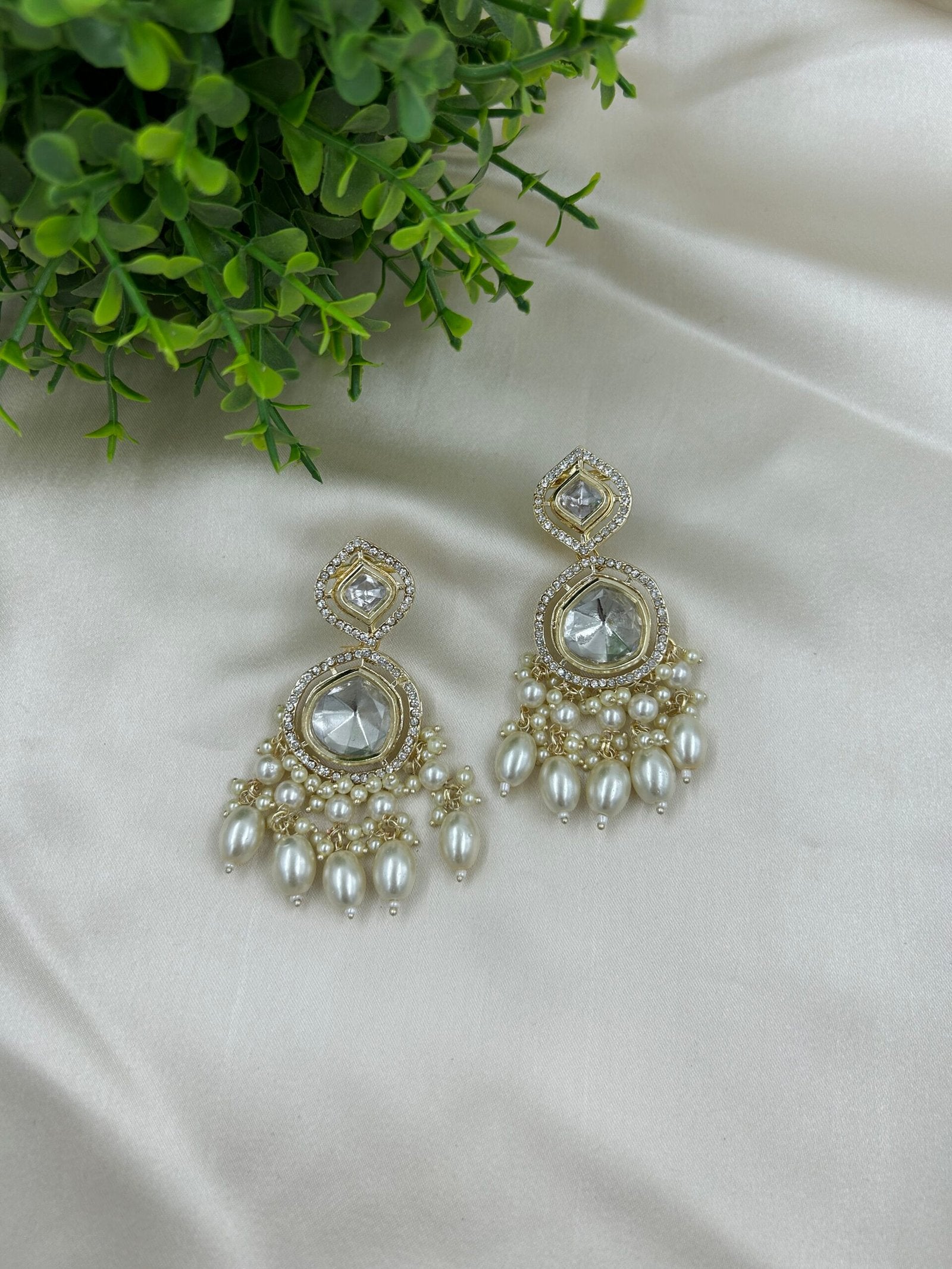 Expertly crafted with a modern twist, our Chaarvi earrings offer a traditional polki look without the heavy weight. Embellished with delicate pearls, these earrings add a touch of elegance to any outfit. Perfect for those seeking a stylish, lightweight accessory.