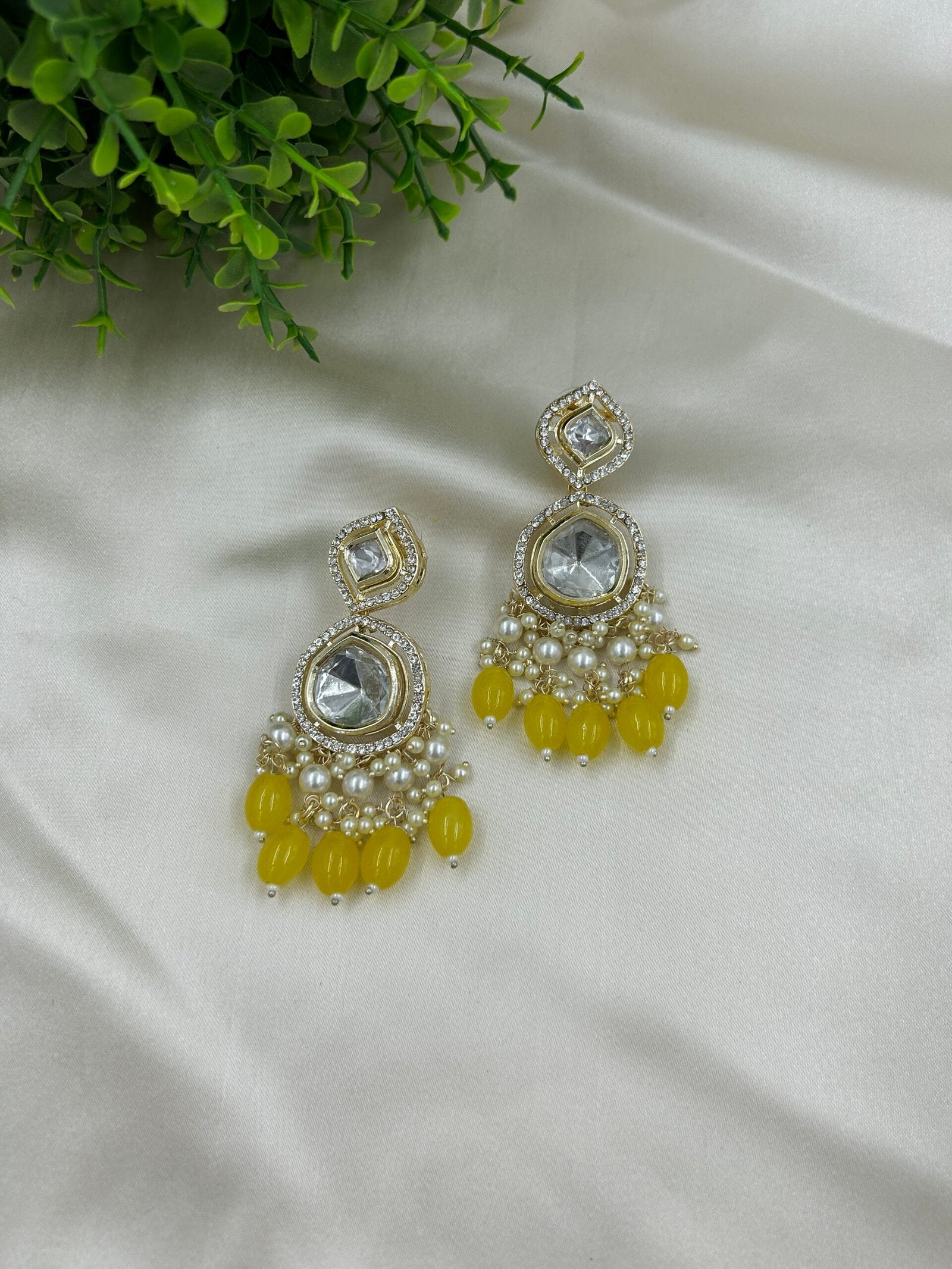 Expertly crafted with a modern twist, our Chaarvi earrings offer a traditional polki look without the heavy weight. Embellished with delicate pearls, these earrings add a touch of elegance to any outfit. Perfect for those seeking a stylish, lightweight accessory.