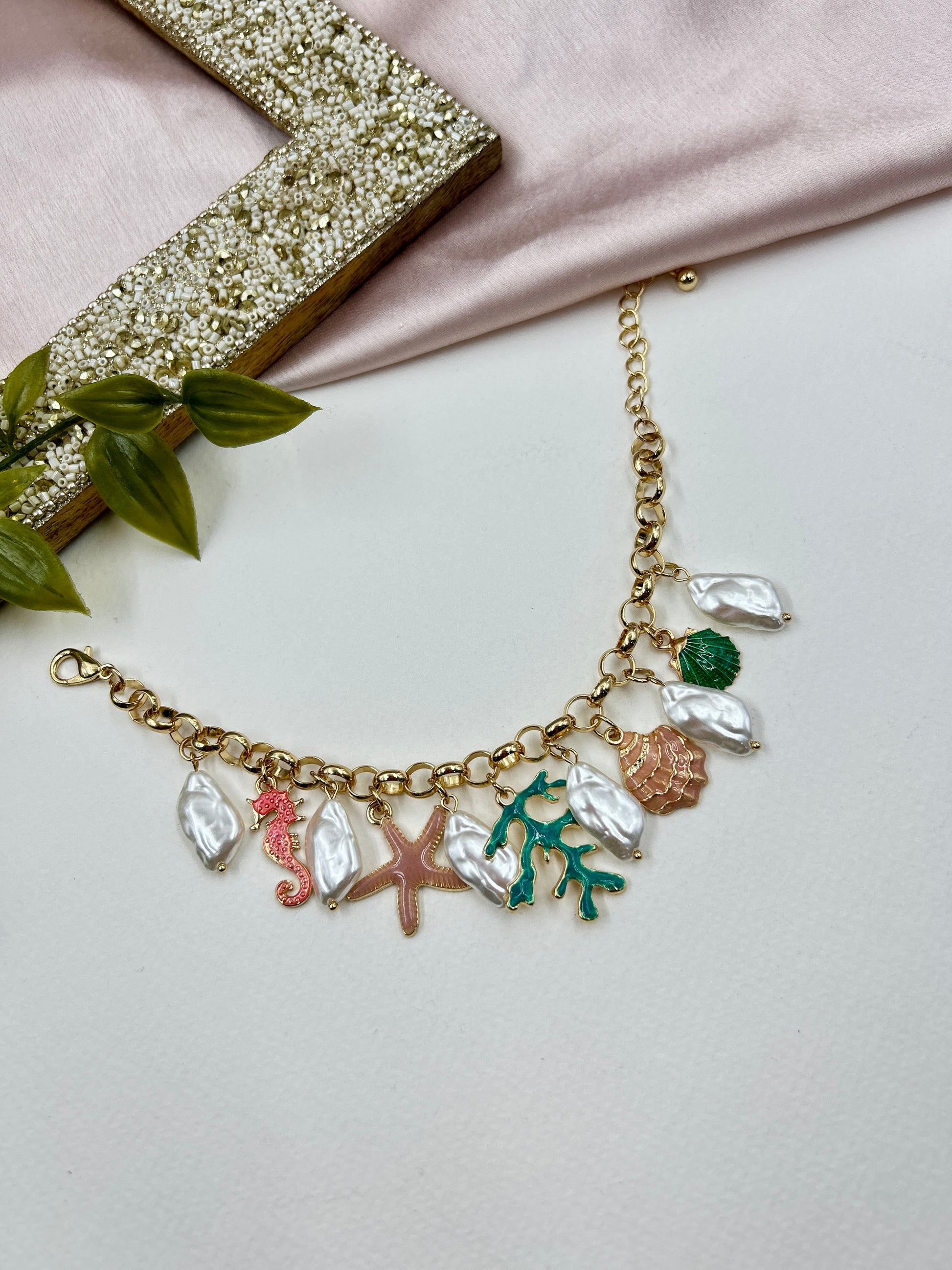 Introducing the Charms Bracelet - a trendy and unique accessory perfect for any fashionista. Made with 18k gold plating, it boasts anti-tarnish and waterproof properties for enduring beauty. Hypoallergenic for sensitive skin, this bracelet will elevate any outfit with its Paris inspired design.
