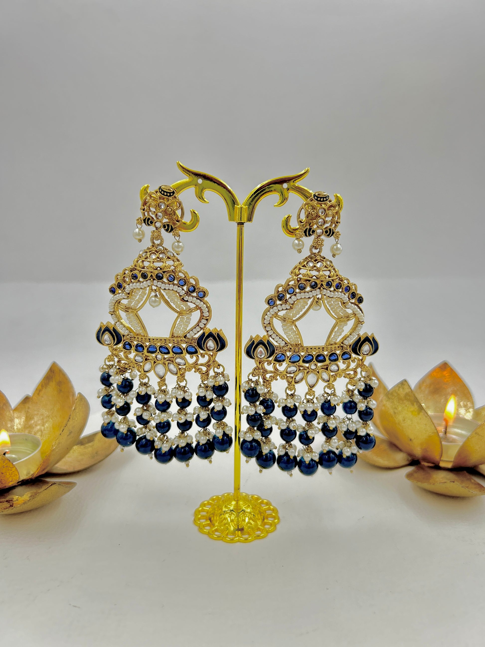 These elegant Dolly Earrings combine traditional Kundan and Meenakari touches with delicate pearl detailing. Their special wedding Dolli shape and unique design make them a must-have for any special occasion. Bring a touch of sophistication to your outfit with these stunning earrings.