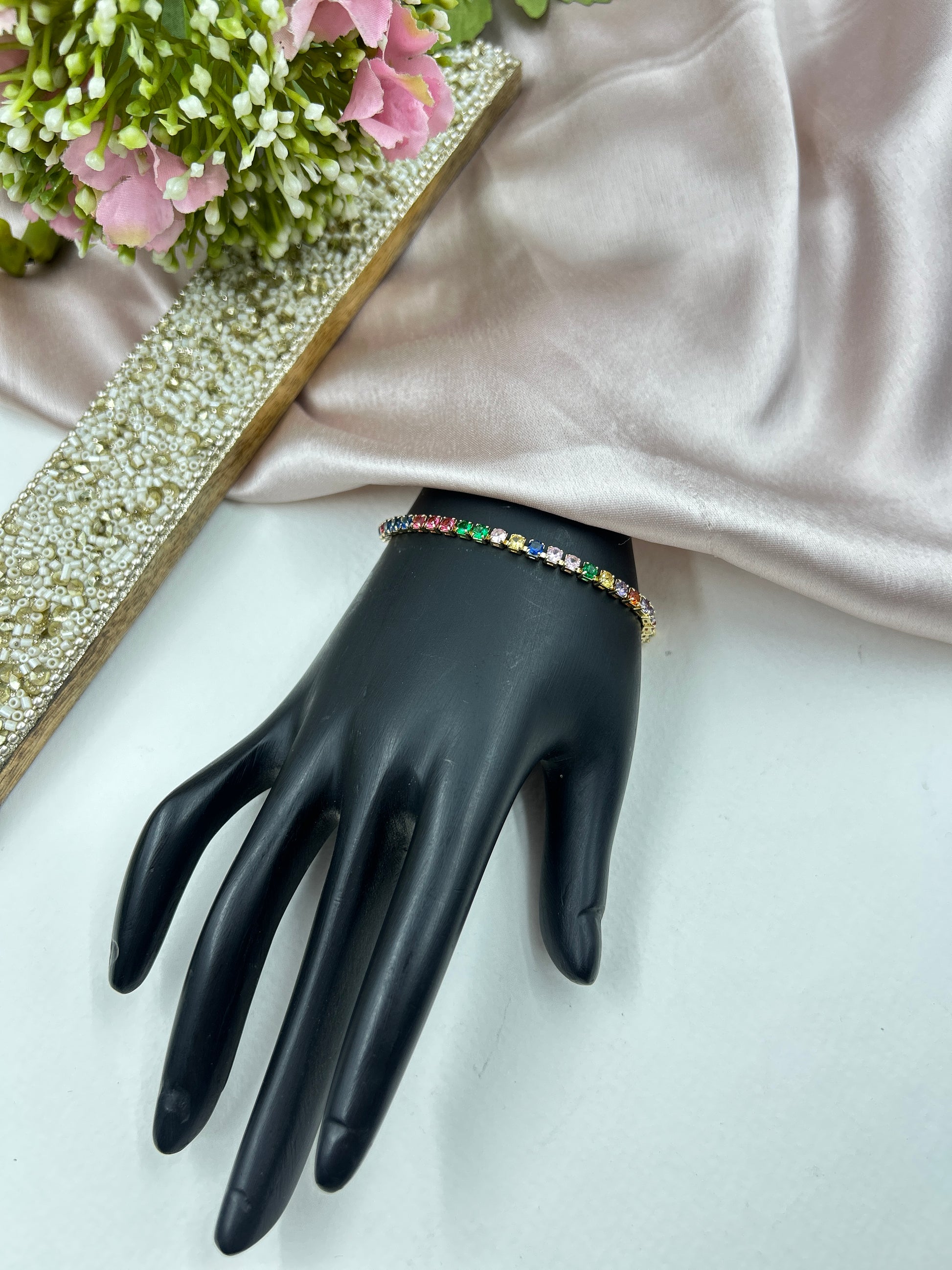 This Gold Multi Tennis Bracelet boasts an anti-tarnish coating, ensuring it stays sleek and elegant for years to come. The hypoallergenic material provides a secure and comfortable wear, making it a classy and modern addition to any outfit.