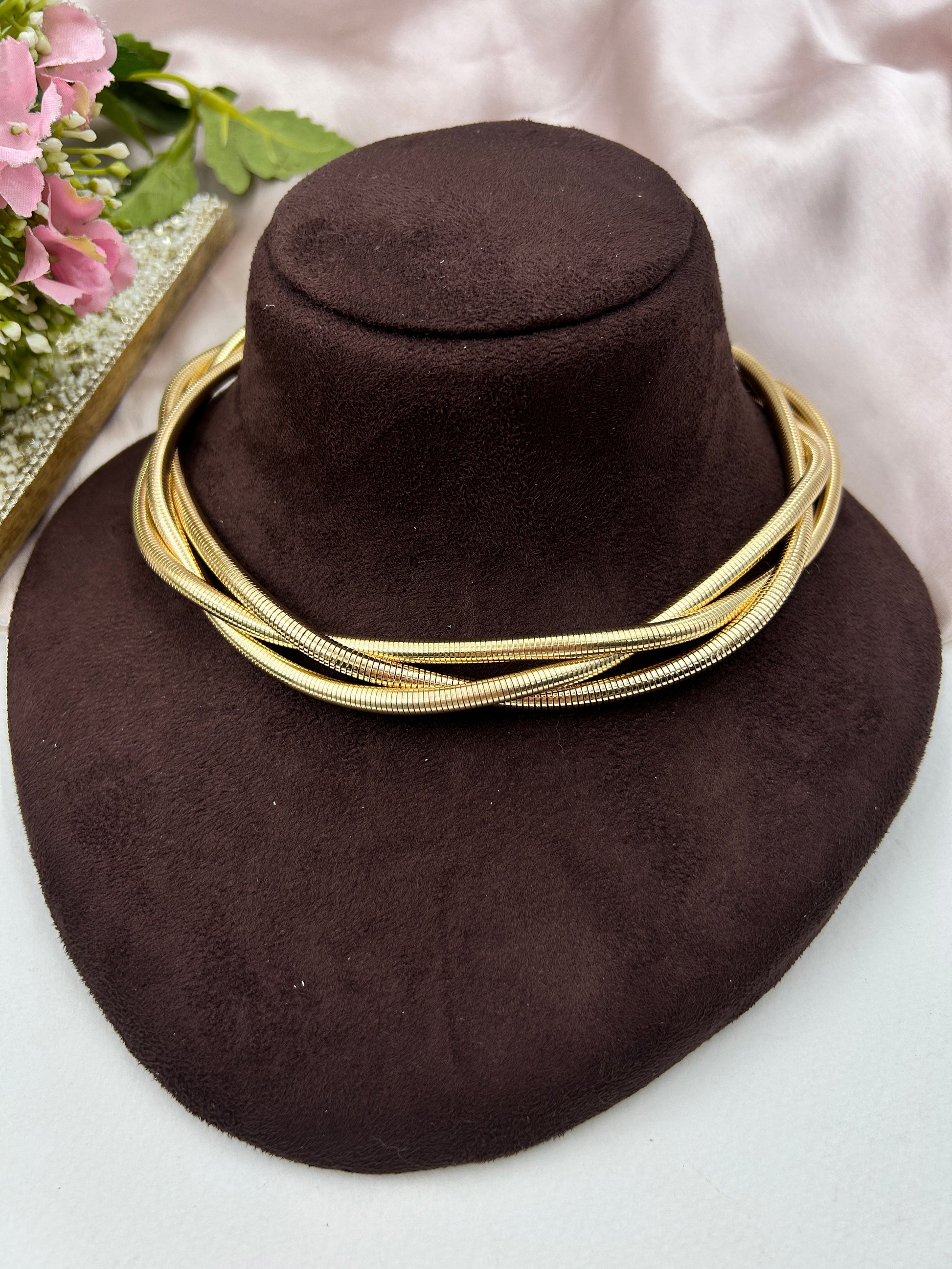 Discover the ultimate blend of elegance and durability with our Inter-twined 18k Gold Plated Neckpiece. Made from stainless steel, it's waterproof, anti-tarnish, and hypoallergenic, making it a must-have for any fashion-forward individual. Stay confident and stylish with this classy and trendy accessory.