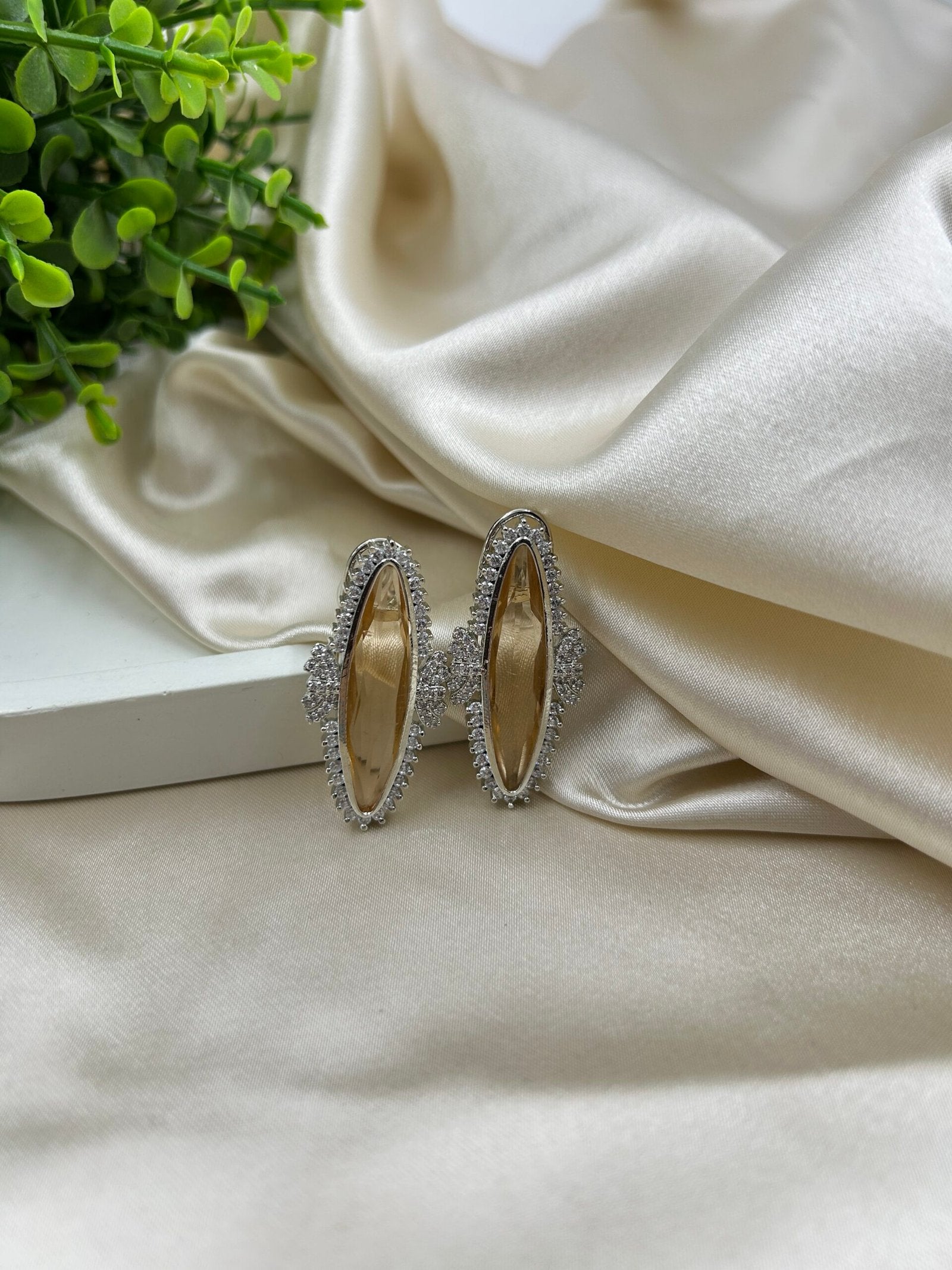 Upgrade your party outfit with our Julie Studs. These sharp and modern earrings feature sparkling American diamonds, making them the perfect accessory for any Western wear.
