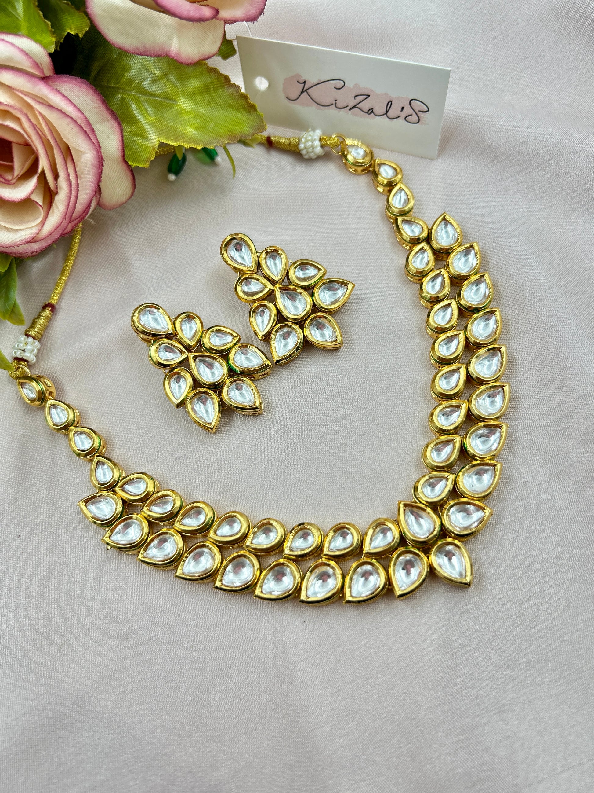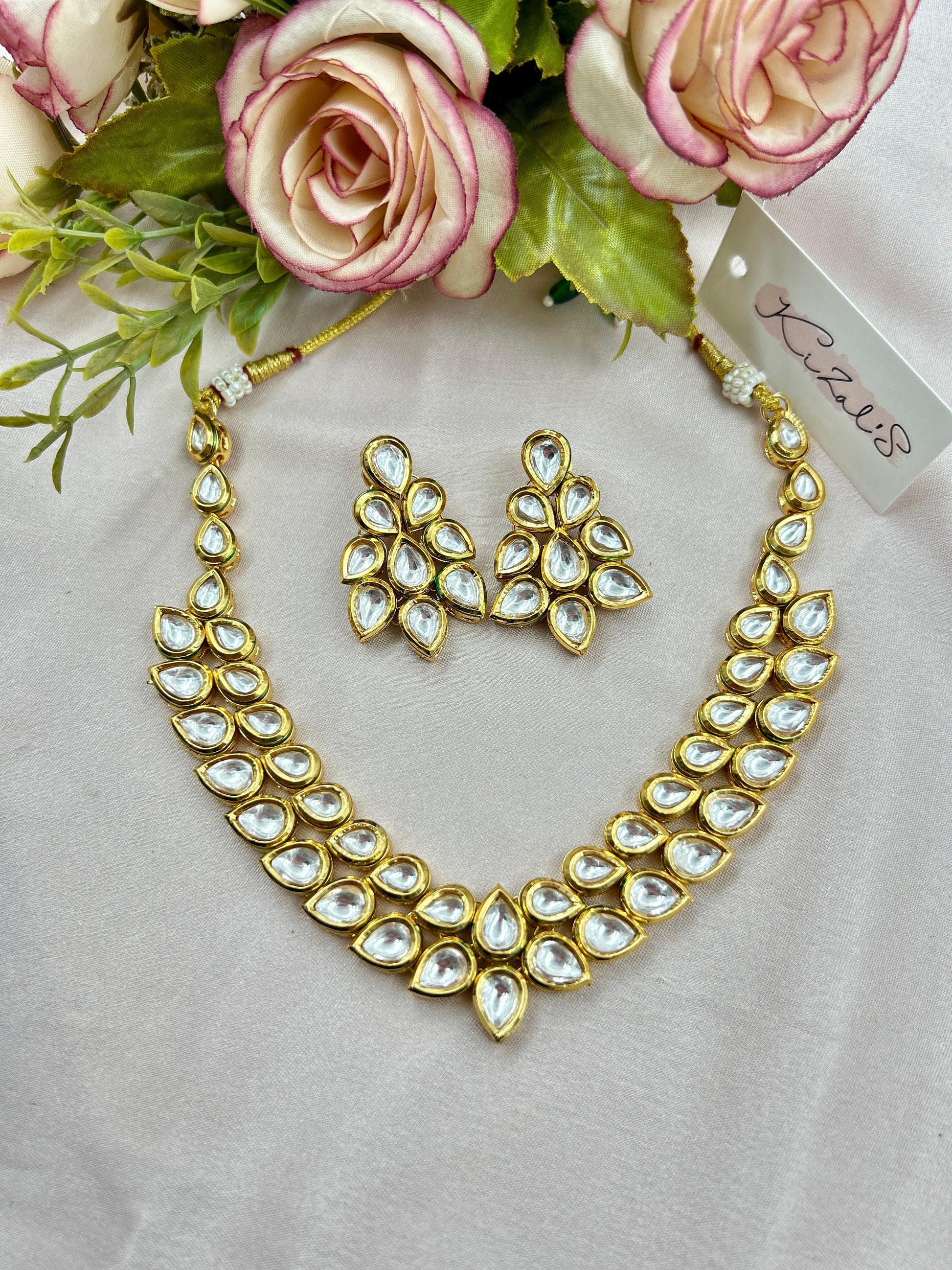 Expertly crafted with Kundan and adorned with a stunning Meenakari finish, the Kasak Kundan Necklace adds an air of sophistication to any outfit. Its functional design features a meenakari back finish, making it a unique and beautiful addition to your jewelry collection. Elevate your style with this luxurious piece.