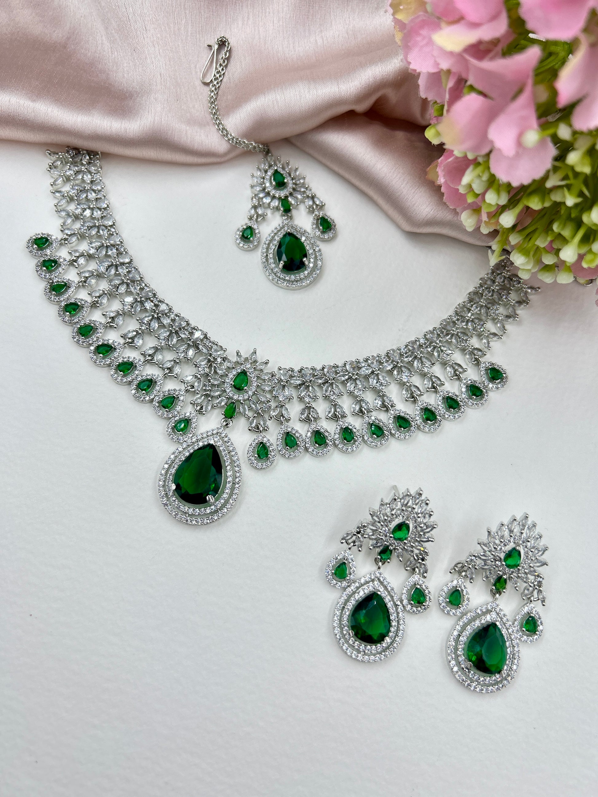 Kavya AD Necklace Set : Emerald (Necklace+Earrings+Maang Teeka)