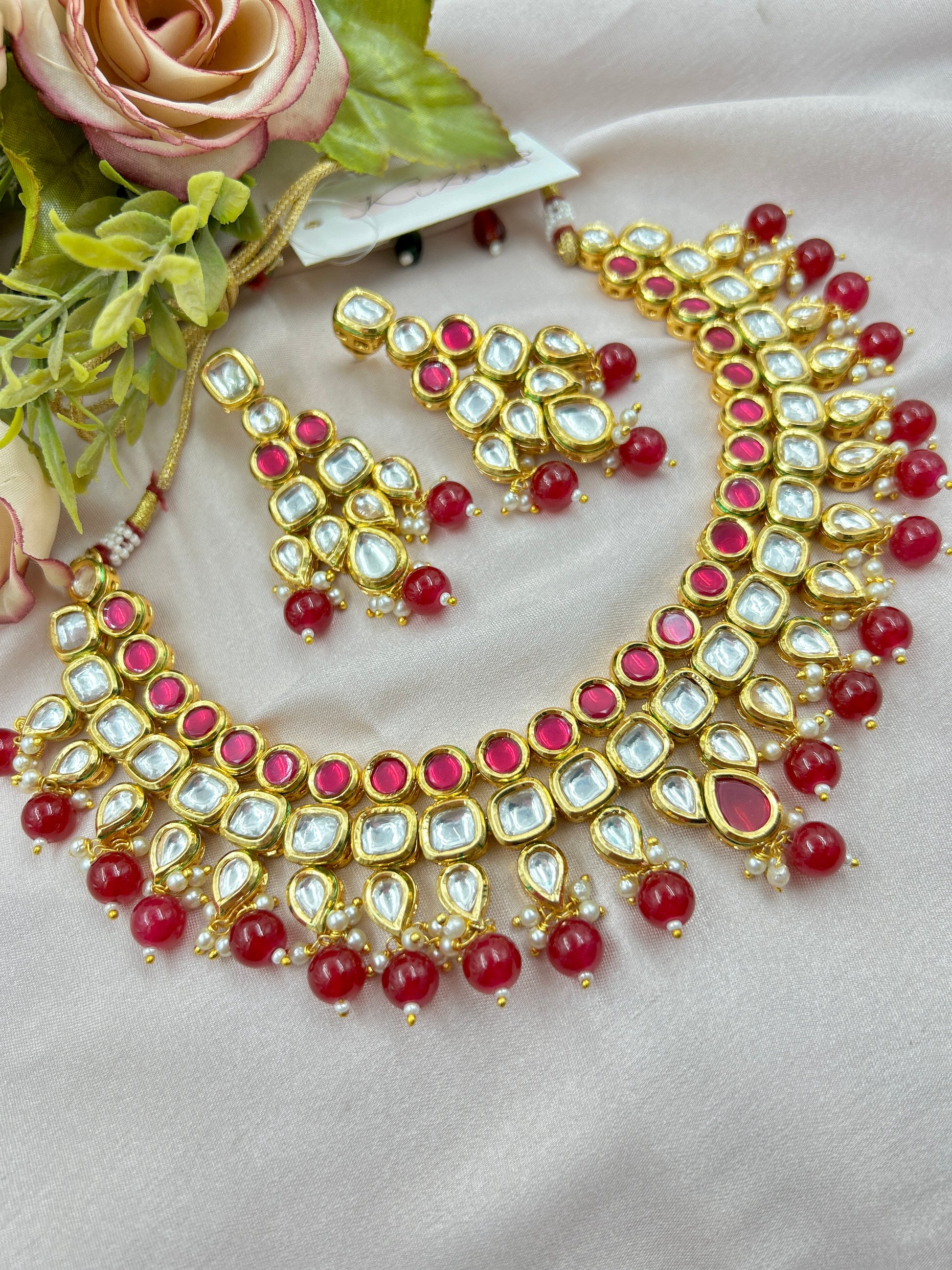 Leela Kundan Necklace : Red