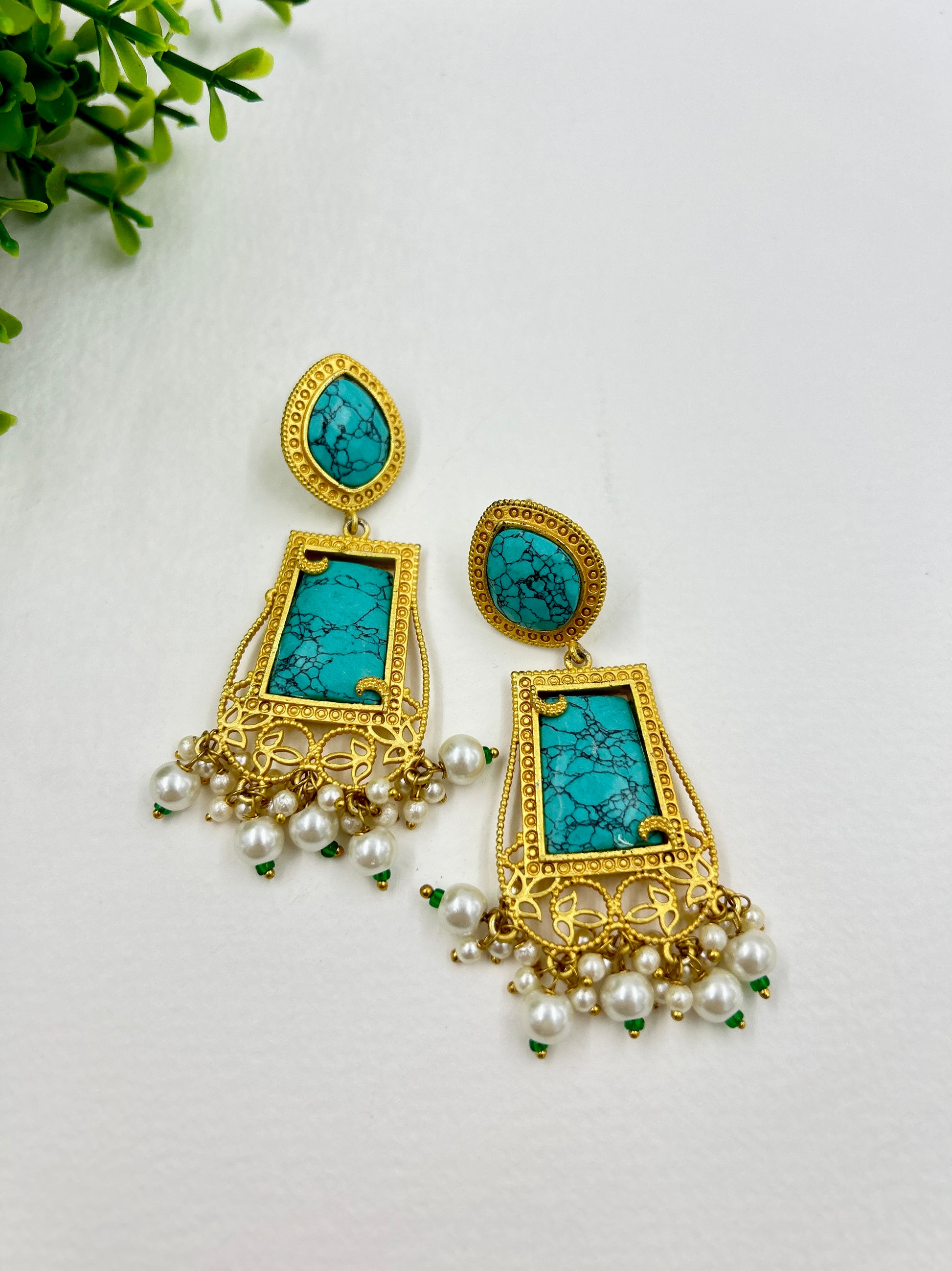 Expertly crafted with a matte polish and high-quality brass, our Mira Earrings in Turquoise offer a budget-friendly option without compromising on style. Enjoy the perfect balance of elegance and affordability with these stunning earrings.