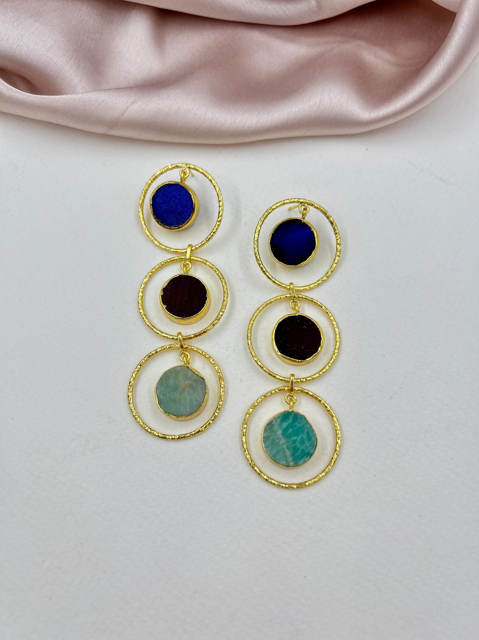 Crafted by skilled artisans in India, these Navishkha Earrings feature a stunning combination of matte gold and brass. With their beautiful danglers and unique design, these earrings effortlessly blend Indo-Western style for a statement look. Elevate your outfit with these intricate handmade earrings.