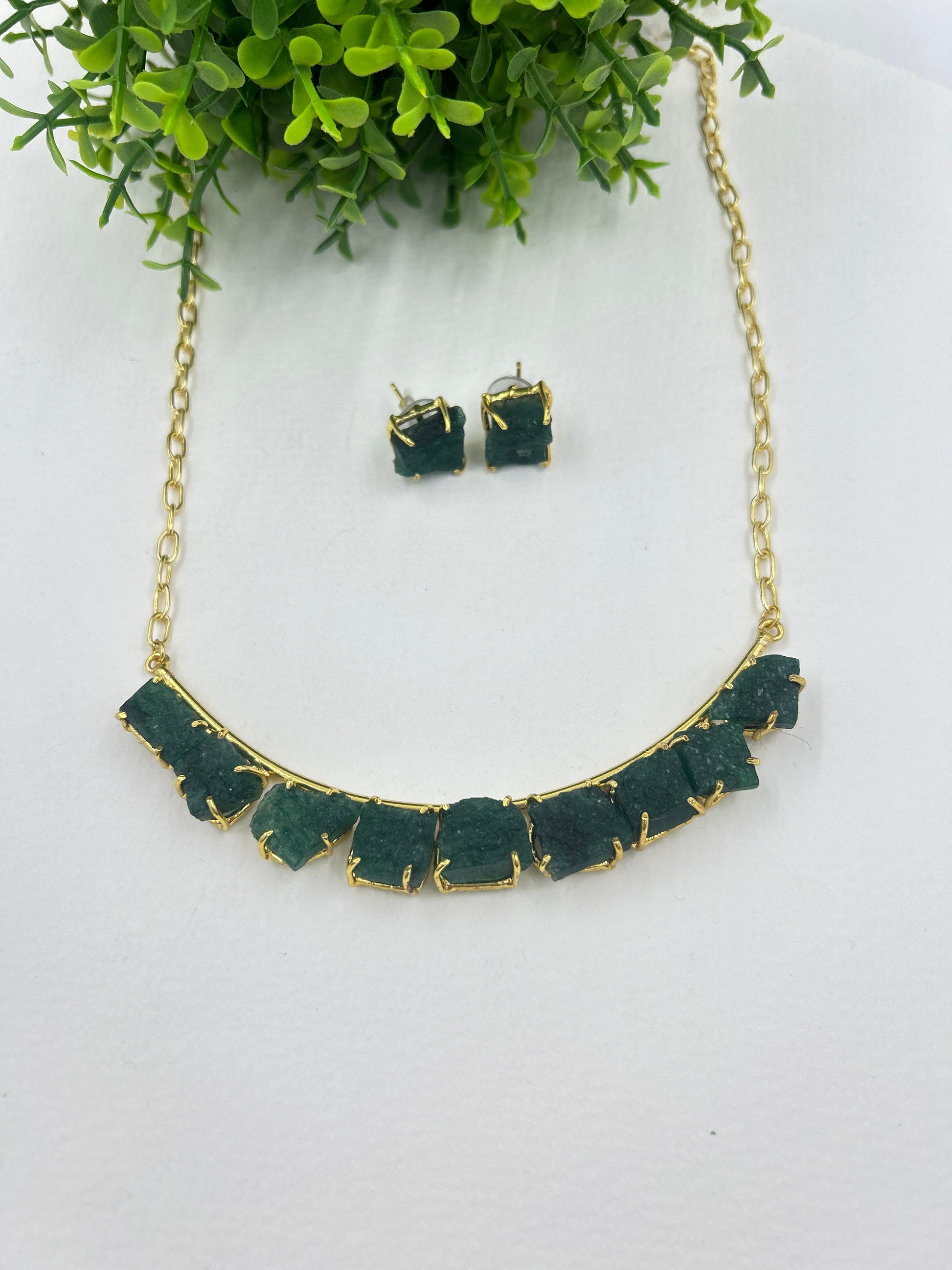 This exquisite Opal Neck Set in rough candy stones boasts a unique blend of indo western and contemporary design, delivering a premium elevated look. The high quality finish and matching necklace with studs make it a perfect addition to any outfit. Elevate your style with this stunning set.