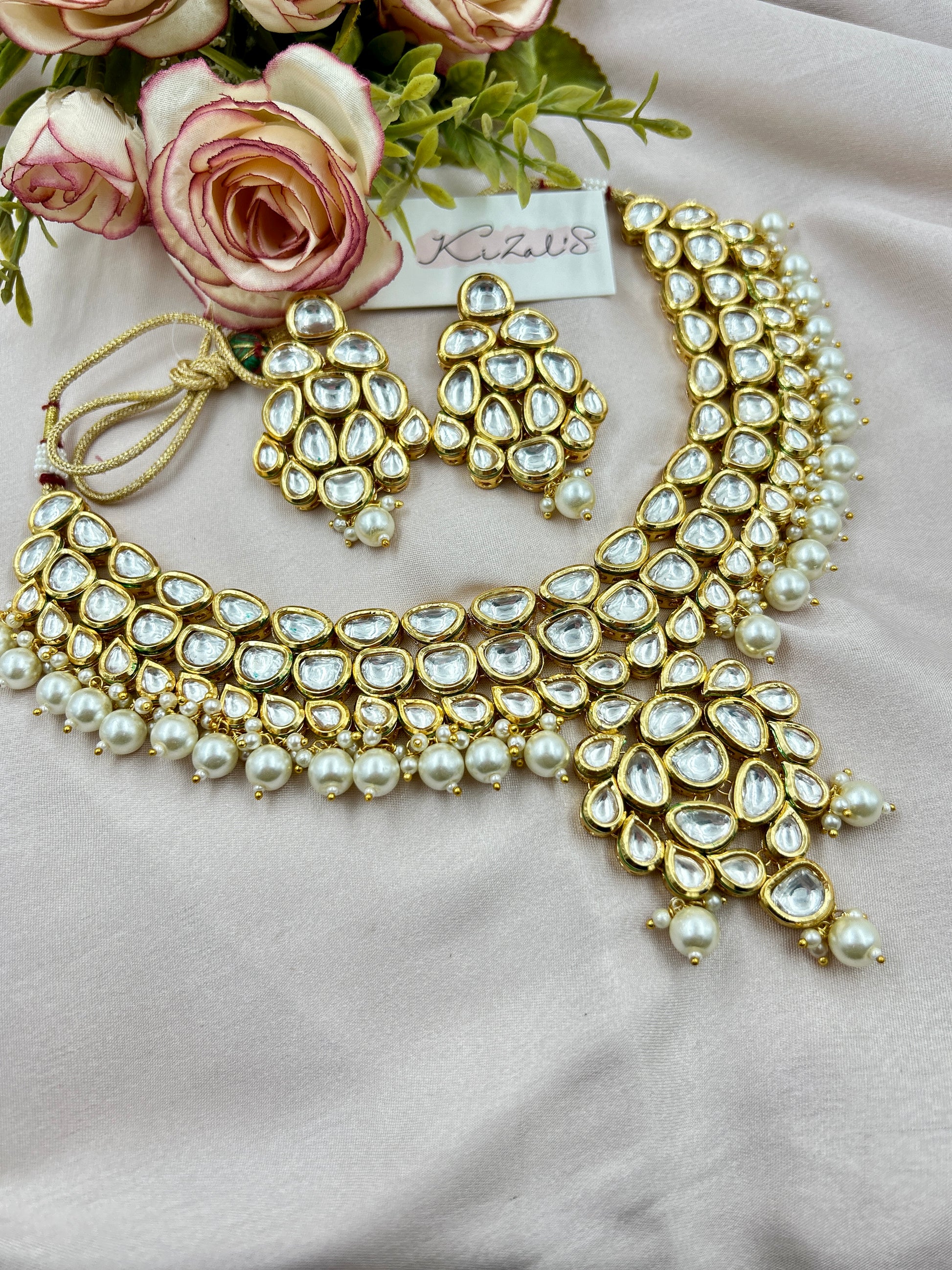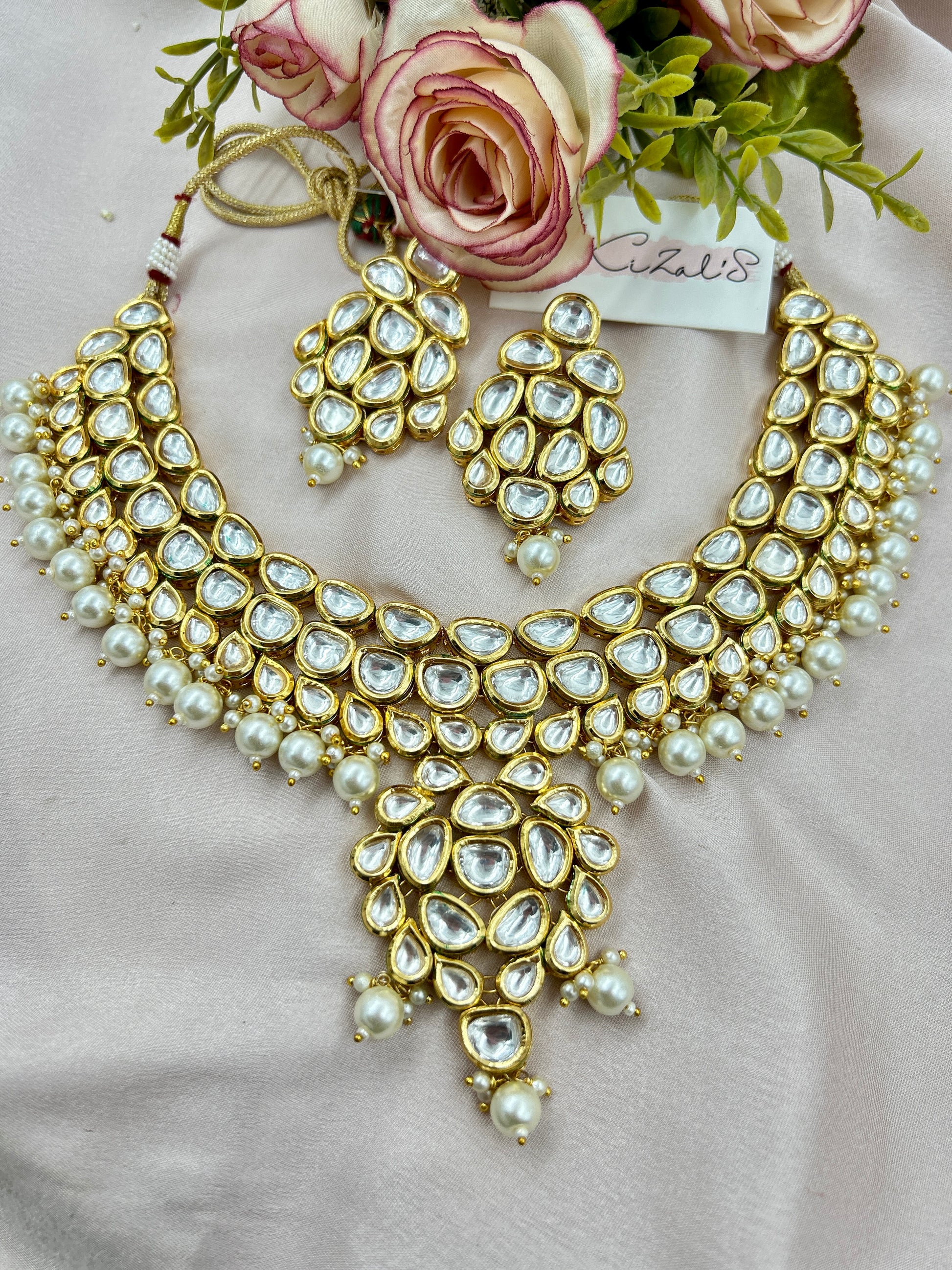 The Priya Kundan Necklace in White exudes sophistication with its Meenakari back finish and elegant pearls. This statement piece is not only stylish, but also pocket-friendly. Elevate any outfit with this versatile and budget-friendly accessory.