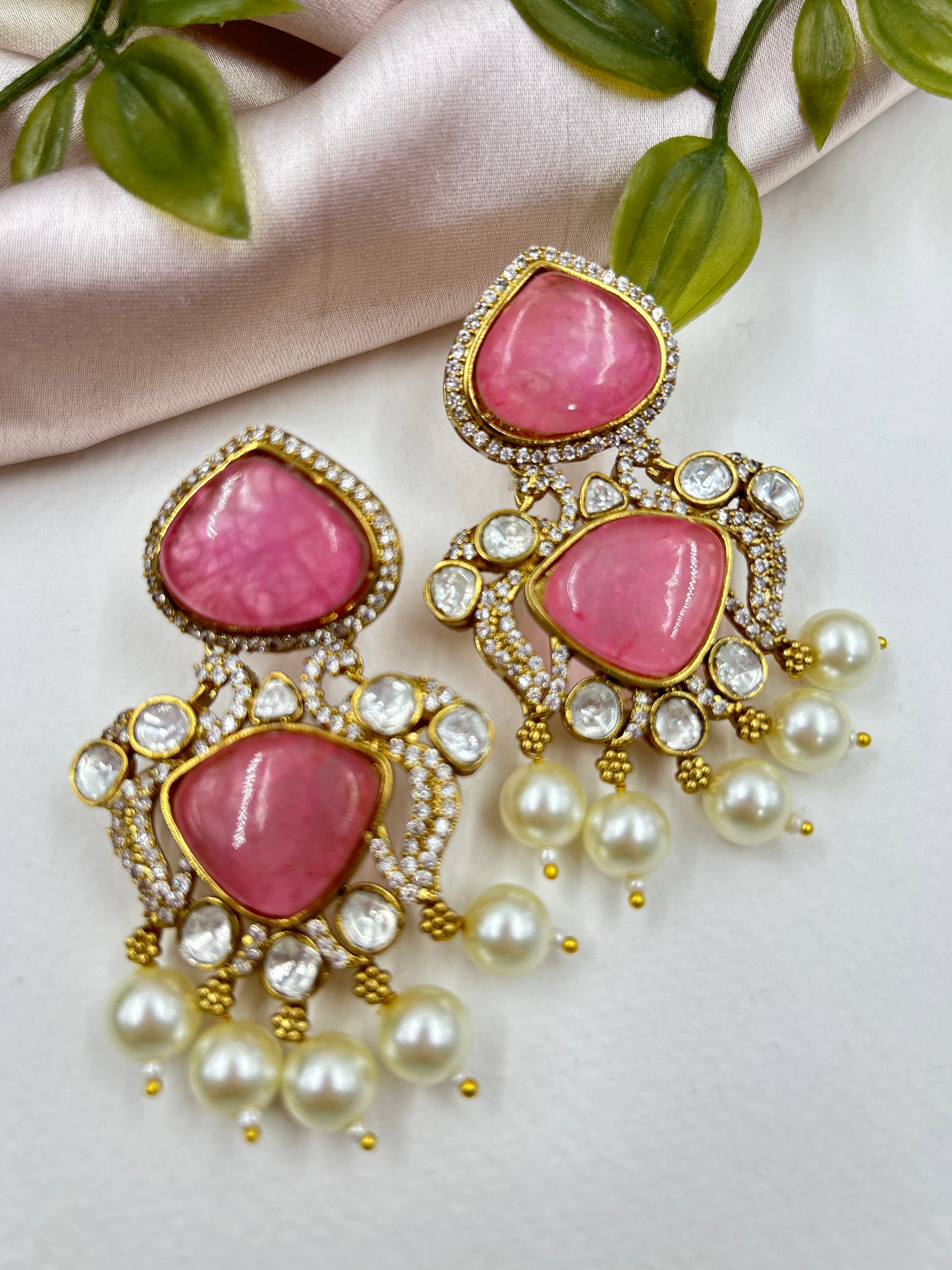 Expertly designed for timeless elegance, Qudarat Polki Earrings offer unparalleled quality with uncut polki stones and pearl drops. AD detailing and Doublet Stones add a touch of regality in antique polish for a truly classic look. Elevate any outfit with these top-notch earrings.