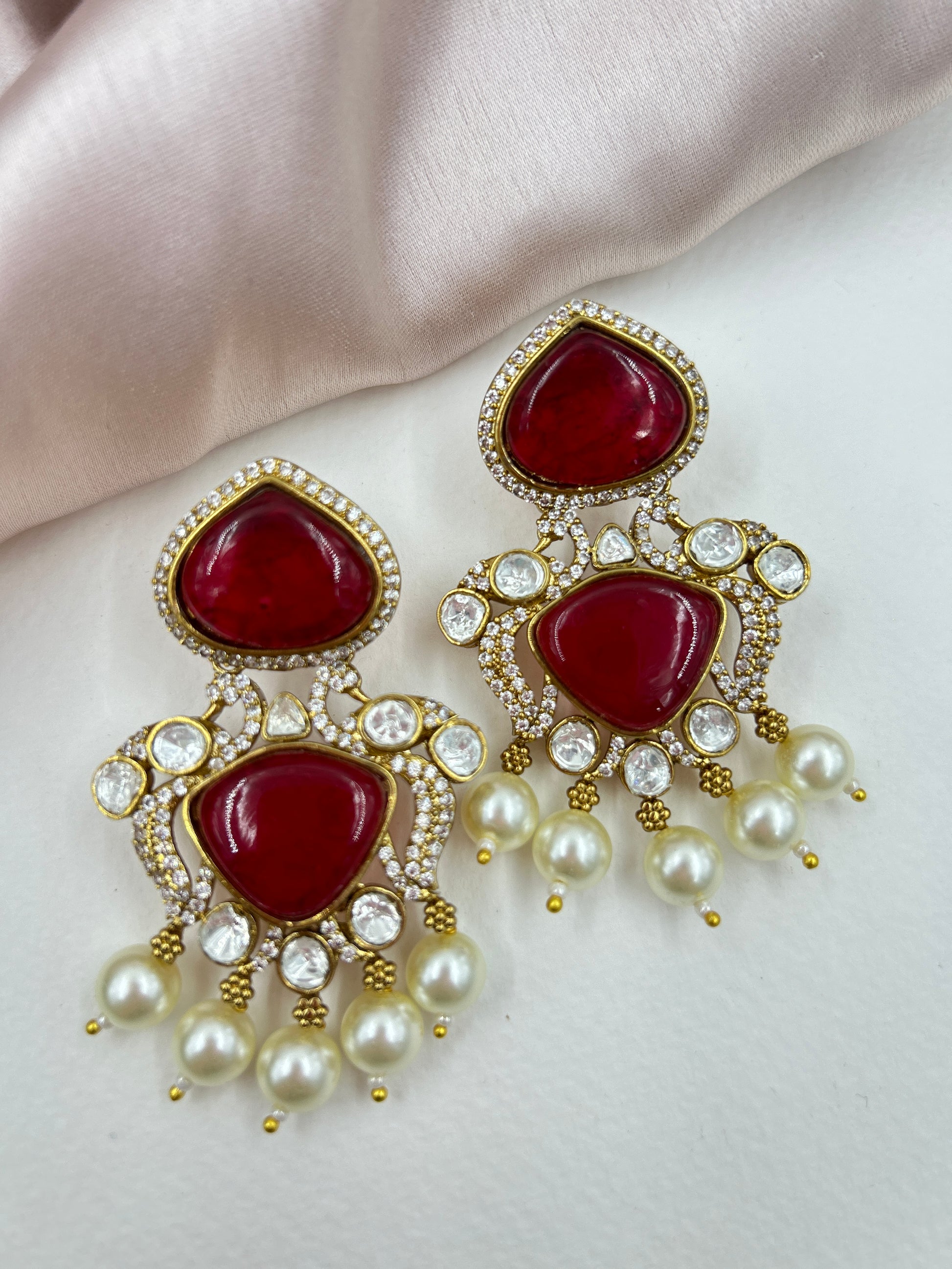 Qudarat Polki Earrings : Red