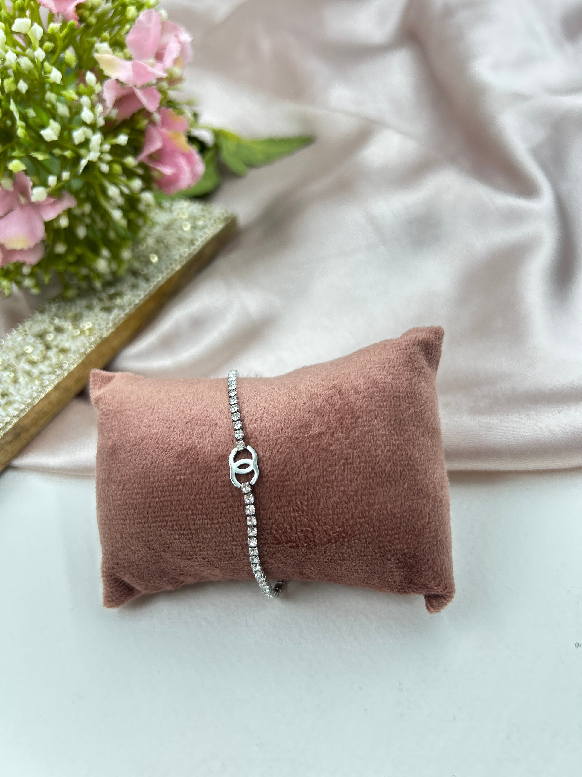 Introducing the Rhythm Anti Tarnish Bracelet in stunning silver. Our beautiful stone studded tennis bracelet is not only waterproof, but also hypoallergenic for sensitive skin. Its anti tarnish properties keep it looking classy and the loose, adjustable fit adds style. Upgrade your jewelry game with Rhythm.