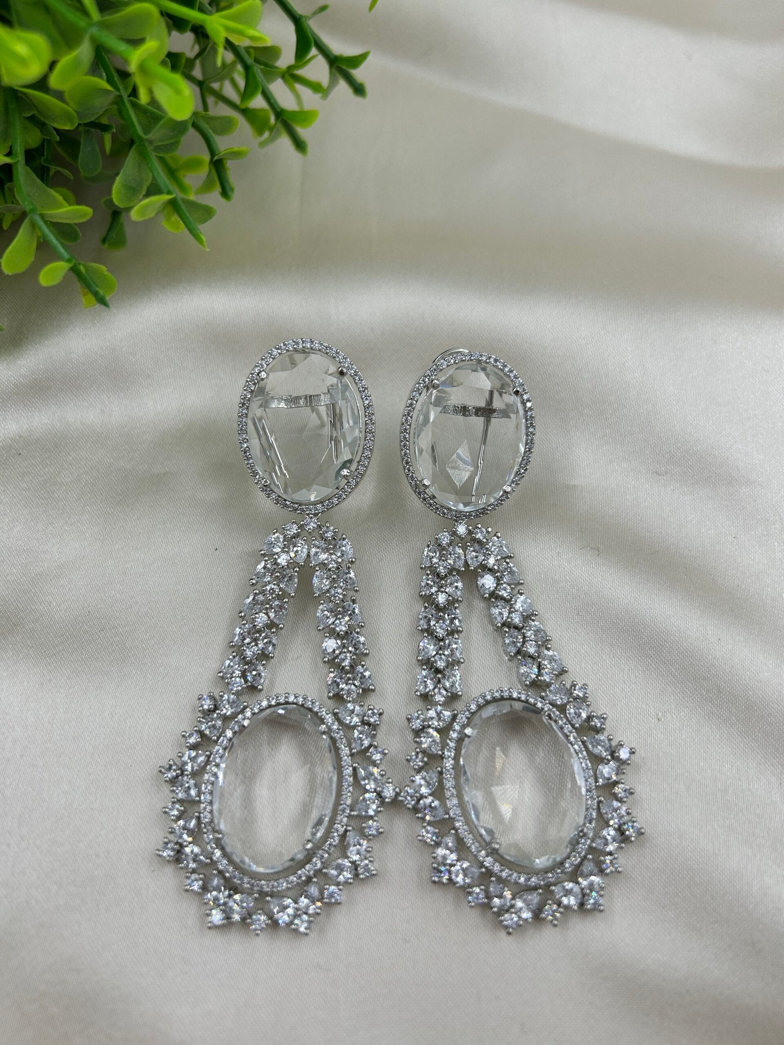 Enhance your western wear with the modern and classy Rihanna Earrings. With sharp cut American diamonds and an incrinate design, these earrings are the perfect addition to your jewelry collection. Elevate your style with these expertly crafted earrings.