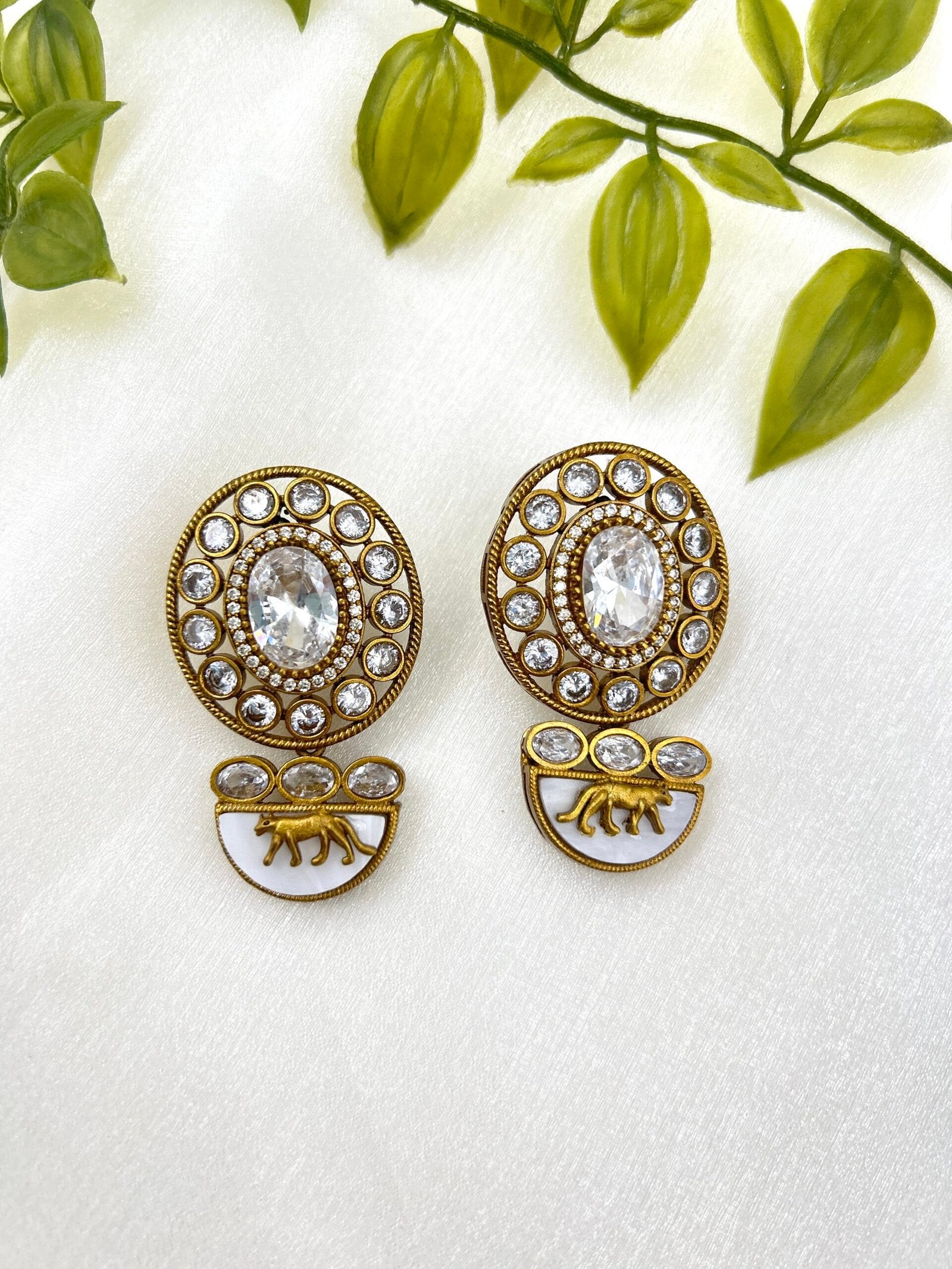 Expertly crafted with an antique gold-lookalike finish, the Saanchi Earrings exude premium design and versatility. Complete any outfit with these elegant and timeless earrings.
