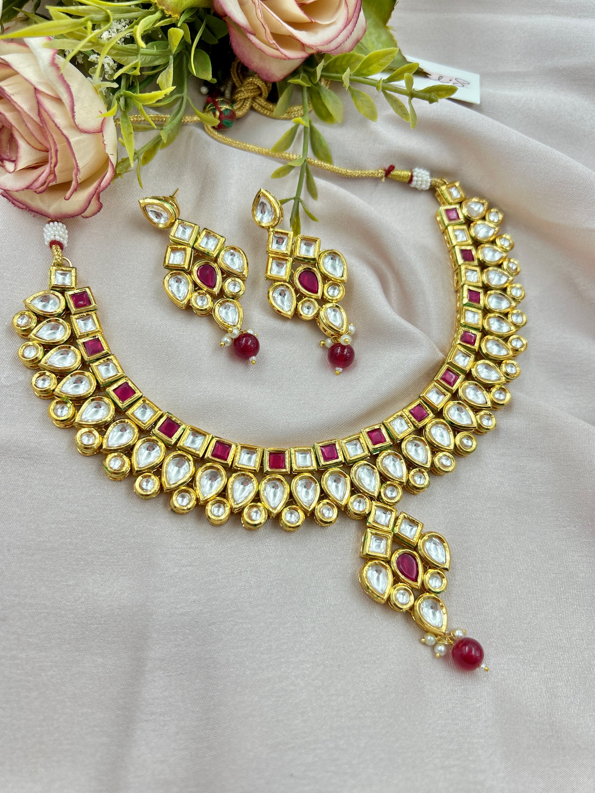 This Savi Kundan Necklace boasts a stunning red color and is designed with a traditional back meenakari technique. The evergreen design is complemented by a high quality finish, making it an elegant and timeless piece. And with its affordable price, this necklace is a must-have addition to your jewelry collection.