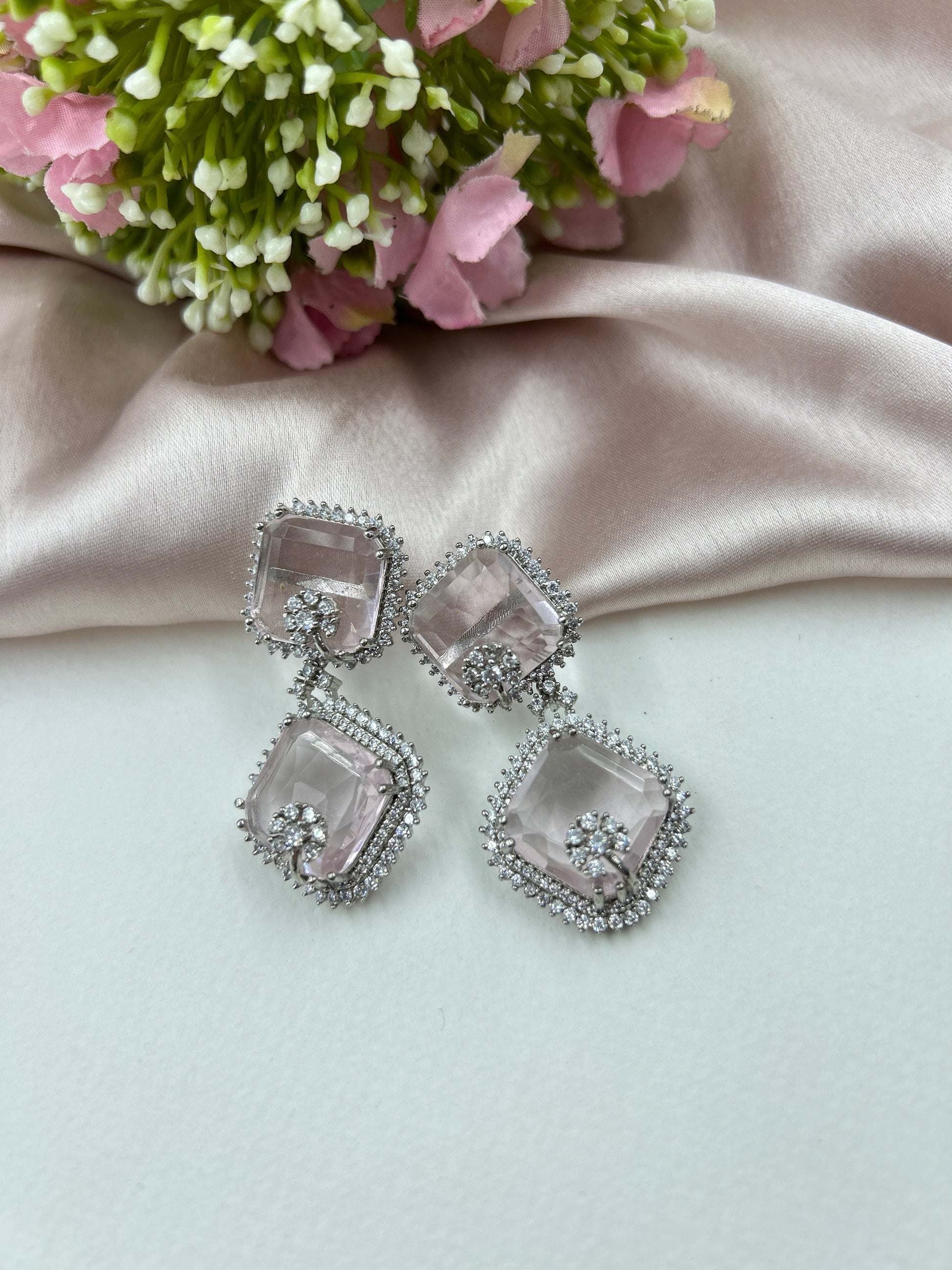 Elevate your style with our Swish Earrings in Pink. Fine AD stones set in premium polish for a sophisticated, high quality finish. A must-have accessory for any fashion-forward individual. Experience luxury and elegance with our Swish collection.