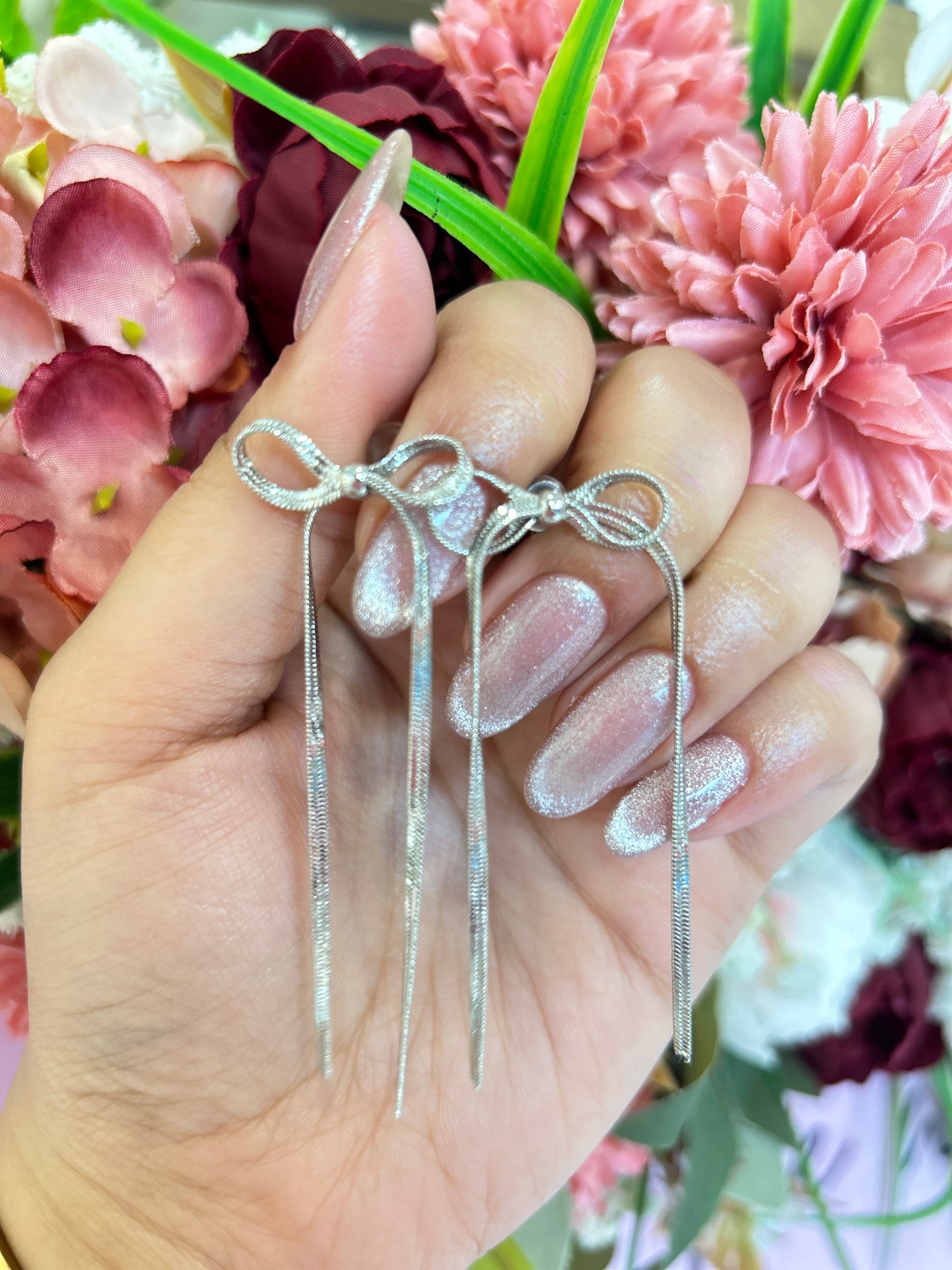 Expertly crafted Tia Earrings in sleek silver, featuring a delicate bow design. These anti-tarnish earrings are waterproof and skin friendly, making them a practical and stylish addition to your jewelry collection. Imported for the highest quality.