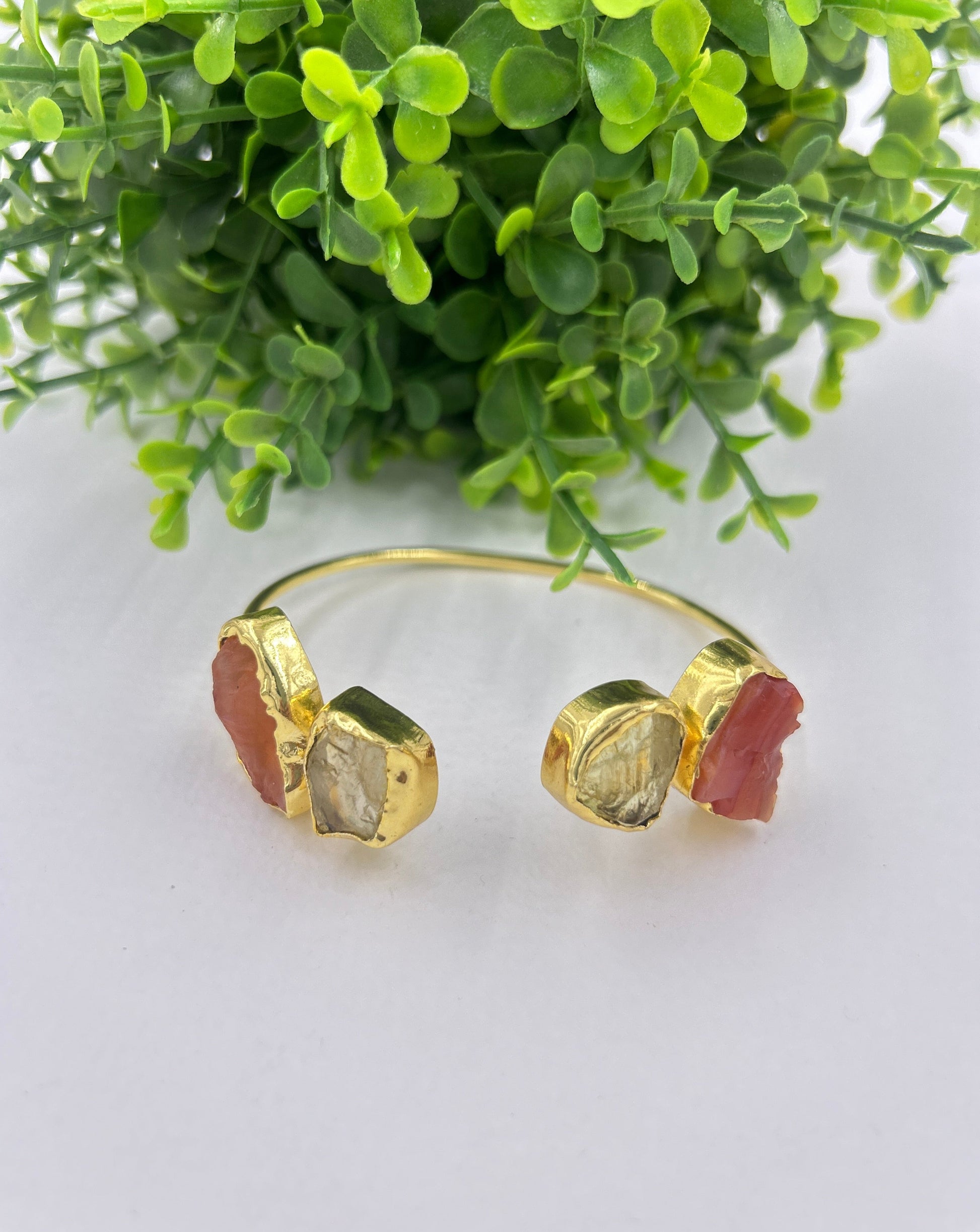 This Vatsala bracelet combines Indo western design and contemporary style for a unique and stunning accessory. The adjustable feature ensures a perfect fit for any wrist. The high quality gold finish and lovely multi color stones make it a beautiful and versatile piece. Its light weight allows for comfortable wear all day.