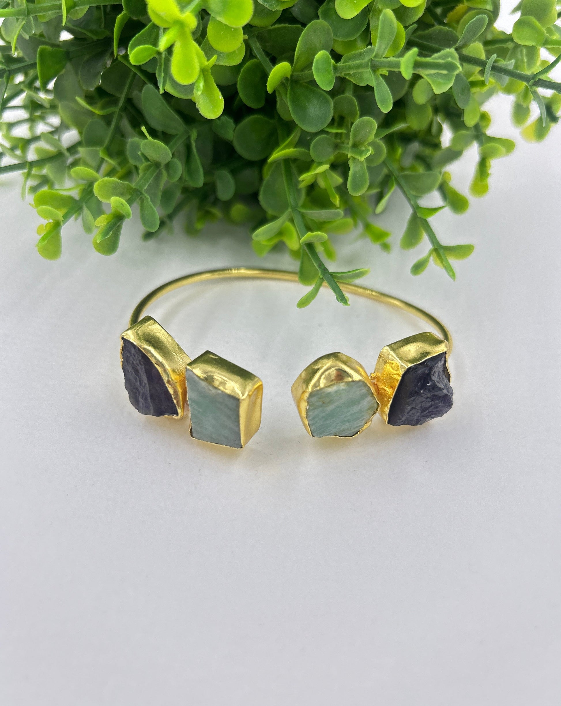 This Vatsala bracelet combines Indo western design and contemporary style for a unique and stunning accessory. The adjustable feature ensures a perfect fit for any wrist. The high quality gold finish and lovely multi color stones make it a beautiful and versatile piece. Its light weight allows for comfortable wear all day.