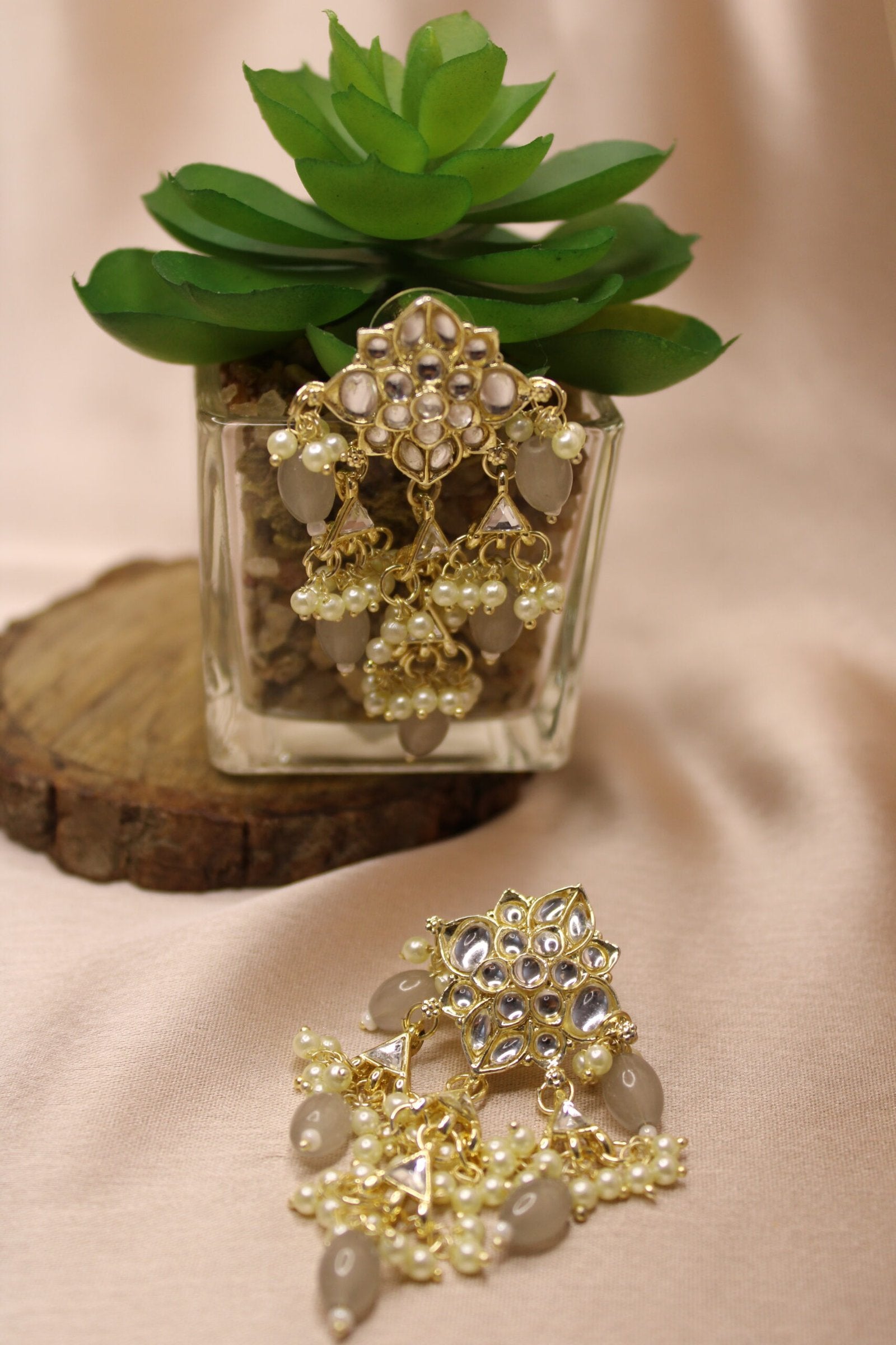 Zeeva earrings are expertly crafted with Kundan for a versatile and elegant look. The compact chandelier design adds a touch of sophistication, while remaining lightweight for comfortable wear. Elevate any outfit with these timeless and stylish earrings.