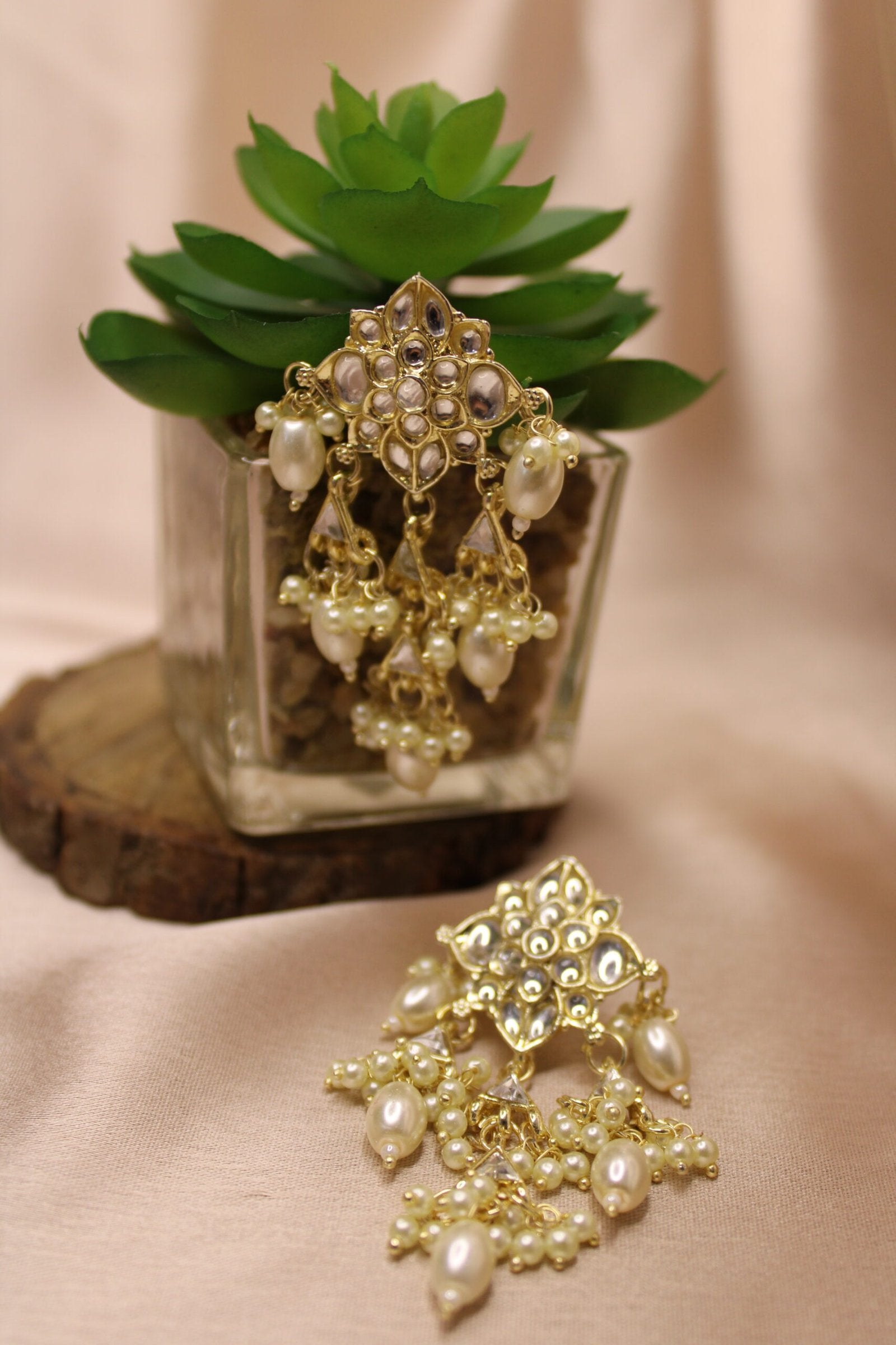 Zeeva earrings are expertly crafted with Kundan for a versatile and elegant look. The compact chandelier design adds a touch of sophistication, while remaining lightweight for comfortable wear. Elevate any outfit with these timeless and stylish earrings.
