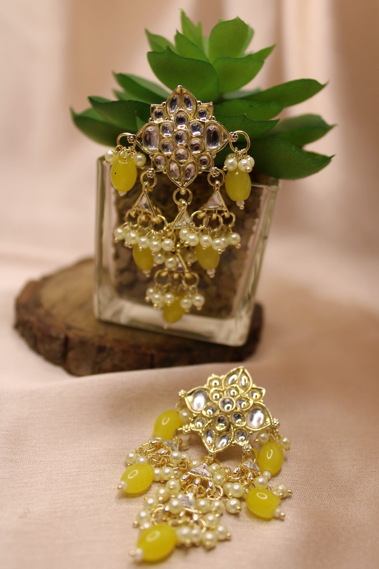 Zeeva earrings are expertly crafted with Kundan for a versatile and elegant look. The compact chandelier design adds a touch of sophistication, while remaining lightweight for comfortable wear. Elevate any outfit with these timeless and stylish earrings.